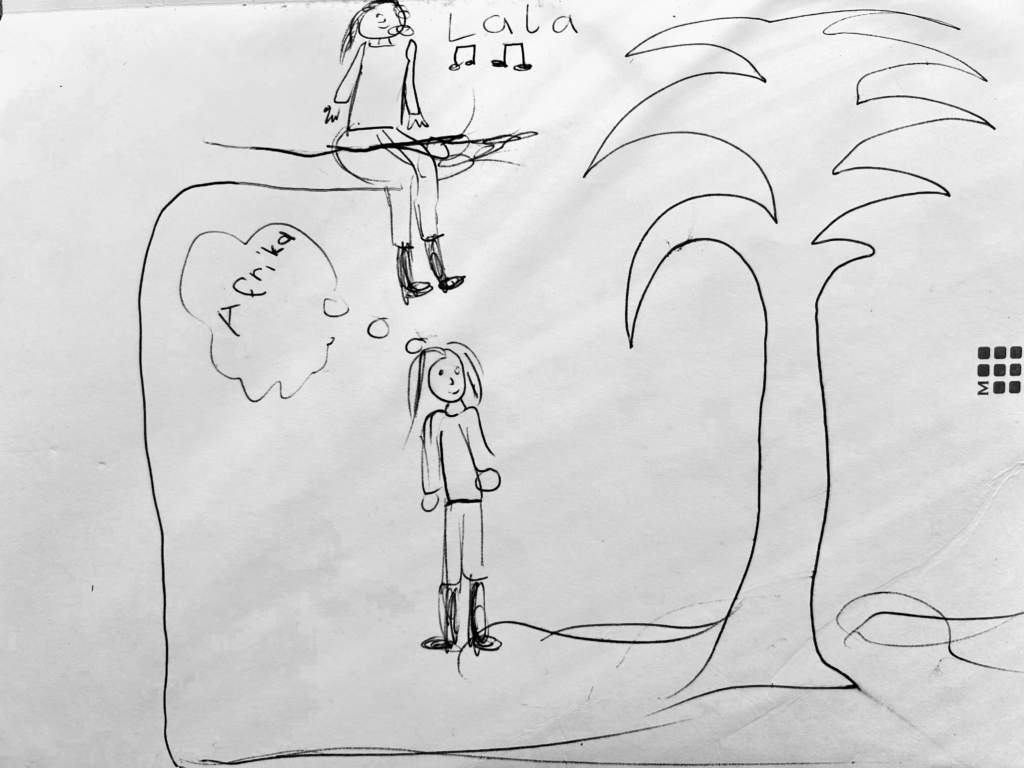This is an drawing by my daughter (8 years old) and how she imagines the song and its application.